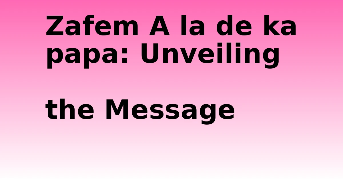 Zafem ‘A la de ka papa’: Lyrics Meaning and Cultural Analysis